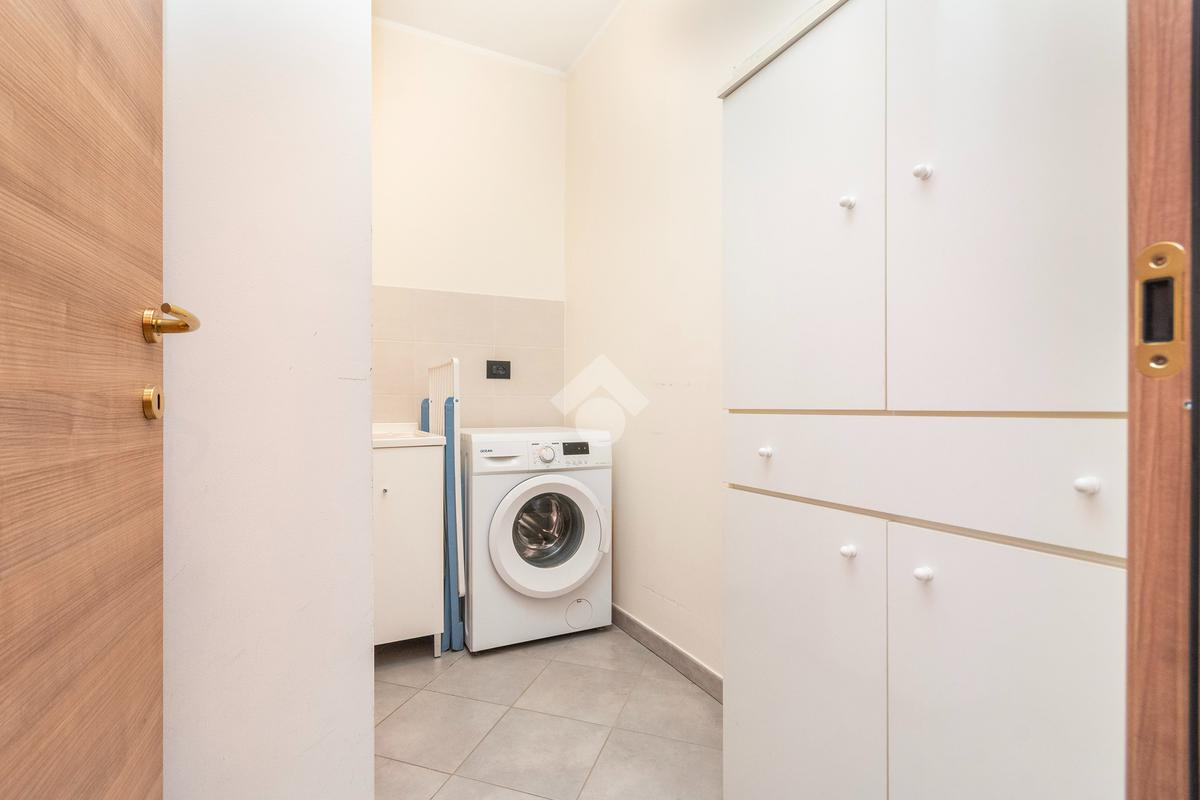 I punti di forza dell'appartamento sono il terrazzo, perfetto per momenti di relax all'aperto e la comoda e funzionale lavanderia. C'è un comodo box auto al piano terreno e il basculante automatizzato permette un comodo ingresso senza dover scendere dall'auto.